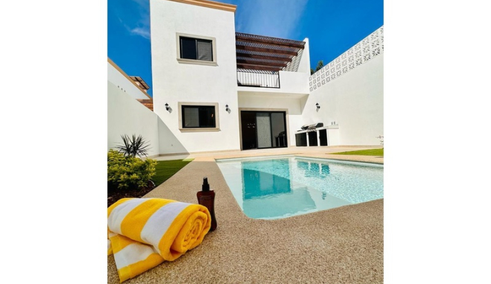 Experimente La Paz desde Casa Sol, situada a pasos del pintoresco "malecón", que ofrece impresionantes vistas a la bahía. Esta propiedad ofrece un cómodo acceso al paseo marítimo, ideal para pasear tranquilamente o disfrutar de las vistas panorámicas de la bahía. ¡No pierda esta oportunidad de ser propietario de una casa en esta codiciada ubicación! • Planta baja: 137 m2 • Primera planta: 104 m2 • Dormitorios: 3 • Baños: 3 1⁄2 (1 con bañera) • Aseos: 4 • Cocina de planta abierta totalmente equipada • Cochera • Piscina privada climatizada y terraza jardín • Terraza en el último piso con vista al mar • Patio desarrollado en el primer piso con pérgola, asientos incorporados y mesa para fogones • Espacio de oficina • Piscina temperada • Pisos de mármol en toda la casa • Todos los gabinetes y puertas en madera de Parota. • Paquete de electrodomésticos incluido • Lavadora/secadora apiladas puntos de vista