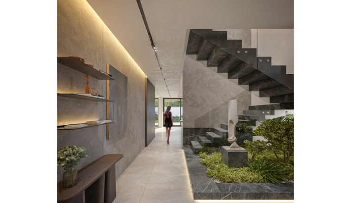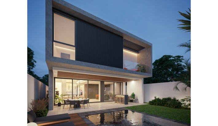 Provincia 229 es un proyecto inspirado en volúmenes simples para resaltar la arquitectura, con detalles únicos en la selección de acabados e iluminación. La elección de materiales en tonos grises monocromáticos, carpintería oscura y revestimientos grises realzan los colores de la naturaleza. Su orientación norte evita la luz solar directa y favorece la ventilación, realzada por el salón comedor de doble altura y ventanales corredizos que integran la zona de terraza. **UBICACIÓN:** **PROVINCIA PRIVADA** Provincia es un desarrollo residencial de 110 hectáreas ubicado sobre la carretera de Progreso, compuesto por 8 fases que modernizan el concepto de club de golf residencial, ofreciendo espacios 100% familiares con amenidades de lujo, incluyendo una casa club con servicios exclusivos. El complejo gira en torno al campo de golf iluminado de 9 hoyos par 3, diseñado por la prestigiosa firma Mark Meijer Golf Course Design y construido por Wallgrow® International. Es el desarrollo ideal para quienes buscan vivir en un espacio residencial reservado, rodeado de naturaleza y arquitectura contemporánea. **PAISAJE** Un proyecto paisajístico exclusivo diseñado por los expertos locales Arqtau, con una selección de vegetación destinada a reforzar la arquitectura y crear espacios zen. **ACABADOS PREMIUM** Una selección de acabados monocromáticos comisariada por los interioristas del grupo Caravatti para conseguir la armonía visual tanto en el interior como en el exterior. **ENCENDIENDO** Un proyecto de iluminación curado por Lightstyle&co con luminarias de la más alta calidad para resaltar detalles arquitectónicos y crear ambientes únicos para el usuario. **AUTOMATIZACIÓN** Utilizando el control de automatización RadioRA3 de Lutron, el proyecto busca sinergia con la iluminación para lograr el máximo confort de vida. Crear escenas, horarios, configuraciones de intensidad de encendido y apagado y sensores de ocupación y desocupación permitirán al usuario tener un control más sencillo y cómodo del espacio de iluminación. Además, se prevé una iluminación circadiana con grandes beneficios para la calidad de vida. **VENTILADOR DE CA Y BOBINA** Todo el proyecto está equipado con aires acondicionados fan and coil con estéticas rejillas que no interfieren con el diseño y decoración interior del proyecto. El concepto se adhiere al principio de "menos es más", con techos lisos y líneas simples para evitar el desorden visual. **COCINA:** Una cocina pensada hasta el más mínimo detalle para favorecer el orden y la practicidad del usuario; equipado con marcas de electrodomésticos de primera calidad como Vintec, Smeg y GE Profile. El paquete de electrodomésticos incluye: - Placa de inducción - Campana extractora - Horno microondas - Horno convencional - Lavavajillas panelable - Vinoteca con capacidad para 41 botellas. - Refrigerador La isla para 4 personas se convierte en la pieza central del espacio, con una luminaria de cuerda LED suspendida de Lukelamp Co para darle un toque único. Las amplias áreas a su alrededor fomentan la socialización, permitiendo que el espacio se integre con la sala-comedor si así se desea; o aíslelo con una puerta corrediza con paneles de madera para mayor privacidad. El mármol Santo Tomás en acabado mate, combinado con la madera de roble oscuro, crea un tono atemporal que contrasta con el resto de acabados. Además, una vista directa a la terraza refuerza la serenidad natural del espacio. **SALA-COMEDOR** Junto a la cocina, la sala de estar está diseñada para ofrecer un alojamiento óptimo para todas las ocasiones, desde conversaciones enriquecedoras en áreas íntimas para sentarse hasta cenas de celebración. Muebles distintivos con detalles de iluminación ocupan un lugar central en el área social, con selecciones personalizadas disponibles para todos los presupuestos y gustos. El comedor se centra alrededor de una mesa personalizada hecha de madera natural y piedra, con capacidad para ocho personas. Ubicado frente a un estante personalizado de pared a pared para exhibir objetos decorativos, el área del comedor está sutilmente iluminada por un trío de lámparas esculturales de la marca italiana FLOS, que proyectan un brillo favorecedor. **TERRAZA** El espacio ideal para una tarde en familia o con amigos es un área semicubierta con barra y cocina exterior para asados. El diseño del jardín mantiene el concepto de diseño interior, haciéndote sentir un ambiente zen mientras disfrutas del aire natural y el sonido del agua de la piscina infinita. **RECAMARA PRINCIPAL** Una paleta de tonos grises y detalles marrones inspiraron el dormitorio principal, enmarcado por un cabecero de paneles de madera que aporta textura a la estancia. El mueble de TV, con acabado en madera, esconde una puerta corredera que accede al vestidor. La habitación está equipada con una cama king-size, iluminación de diseño, un área lounge para noches de cine y una terraza con balcón para disfrutar de los atardeceres. **VESTIDOR** Desde el dormitorio principal, hay acceso directo a un espacioso vestidor con una amplia gama de opciones para exhibir y guardar ropa, zapatos y accesorios, similar a una boutique, que satisface creativamente las necesidades organizativas típicas. El vestidor amplía su potencial de diseño con la introducción de un exclusivo programa de cajones modulares y componibles, fabricados con las últimas tecnologías de producción de aluminio y equipados con herrajes de la marca Blum, así como sistemas de iluminación integrados. Es una solución modular y siempre personalizada diseñada para organizar los espacios. **BAÑO PRINCIPAL** Una zona no sólo destinada al aseo personal sino un espacio con rincones pensados para el relax del usuario. Cuenta con una ducha interior y otra exterior para disfrutar de un momento de contacto con el entorno natural sin renunciar a la privacidad. El tocador tiene lavabos dobles y espacio para 