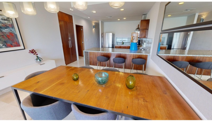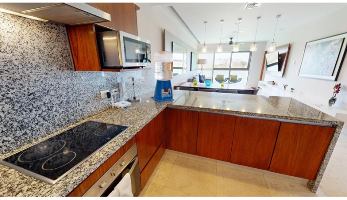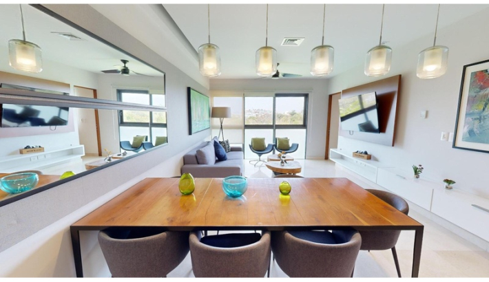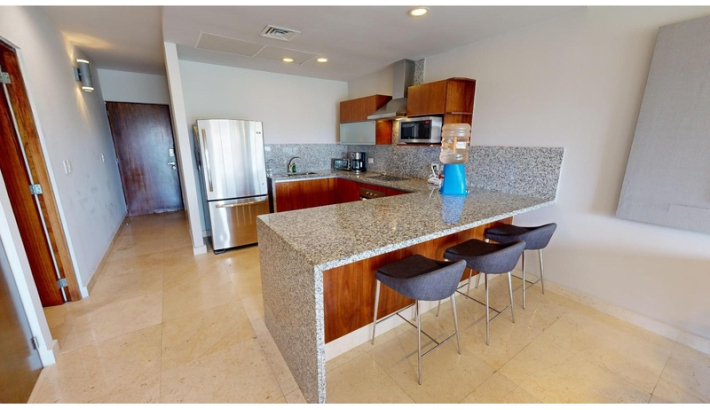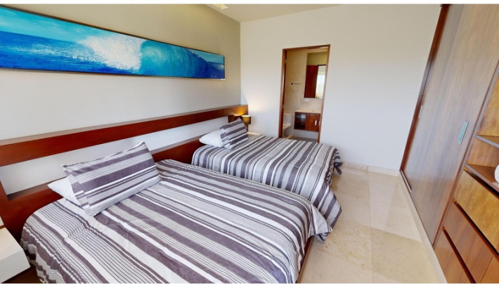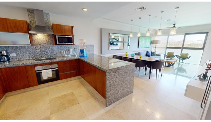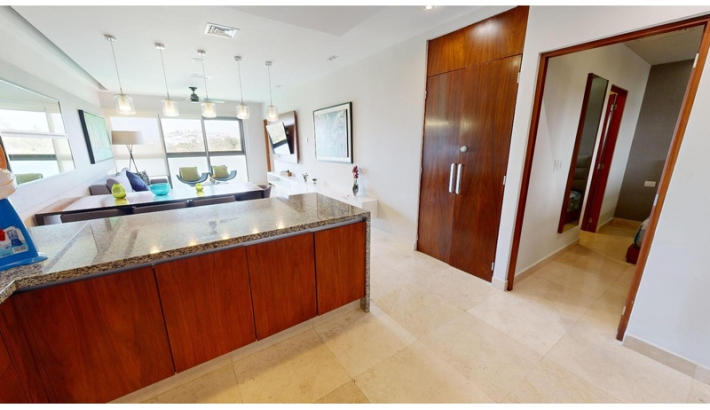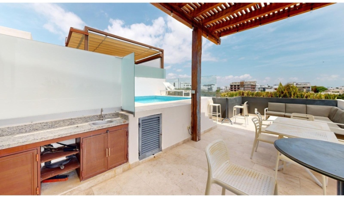 Experimente una puesta de sol en la privacidad de su propia jungla. Lujo, confort y naturaleza. convergen en el corazón de Terrazas, permitiéndole respirar aire fresco y escapar del bullicio urbano con una espectacular vista al mar. La densa vegetación que rodea estos condominios de lujo te hacen sentir conectado y en una forma completamente diferente, fresca y órbita acogedora. Los 52 apartamentos escalonados con terrazas ajardinadas se distribuyen en cinco niveles. Terrazas y su estilo penthouse le permiten despertarse con una vista ampliada del mar. A pesar de ser un edificio voluminoso, el proyecto respeta el corazón de la 38th North Calle, una zona peatonal que se integra amigablemente con su entorno. La naturaleza tiene Nunca ha sido tan lujoso. El elegante diseño de Terrazas respeta la naturaleza y el privacidad de sus habitantes, ubicado en una zona privilegiada de Playa del Carmen, a solo pasos del mar y cerca de la famosa y siempre excitante Quinta Avenida. cada habitación cuenta con pisos de mármol, sobres de granito, aire acondicionado en la sala, comedor sala y dormitorios, así como ventiladores de techo. PENTHOUSE DE 2 NIVELES: - 1 recamara con cama king y baño privado en el piso superior (para 2 personas) - 1 dormitorio con 2 camas dobles y baño privado en la planta baja (para 4 personas) - 1 dormitorio con 2 camas matrimoniales y baño privado en planta baja (para 4 personas) - Closet de lavandería en el acceso interior. - Amplia terraza en planta alta con piscina de inmersión, vista al mar, Pequeña barra con fregadero, comedor y zona de descanso. - 1 plaza de aparcamiento amplia y de fácil aparcamiento para guardar un vehículo o material de playa.