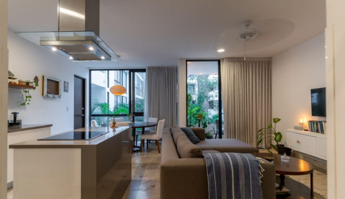 Hermoso Apartamento Ubicado en el Corazón de Uno de los Más Reconocidos del País Destinos Vacacionales, Playa del Carmen.** A sólo 9 minutos de la playa, este La magnífica propiedad ofrece la oportunidad perfecta para imaginarse viviendo aquí, disfrutando del impresionante amanecer o atardecer todos los días desde la azotea, que cuenta con un Piscina infinita de 19 metros de largo. Alternativamente, puedes generar ingresos cuando no estás usándolo. **Características de la propiedad:** * Dos habitaciones, cada una con baño completo; el maestro El dormitorio incluye walk-in closet y el dormitorio secundario tiene vestidor independiente. Acceso para potencial alquiler. * Sala, comedor, cocina bien equipada y un Balcón con vista a la fuente de agua central del complejo. * Totalmente amueblado. * Ubicado en el primer piso. * Rooftop con piscina infinity de 19 metros de largo. * Ascensor. * Gimnasia. *Yoga área. *Club infantil. *Área de coworking. * Amplio estacionamiento con lugares no asignados. * Trastero de 23,86 m2, uno de los más grandes del edificio. * Alcantarillado * Internet * Electricidad * Caminos pavimentados * TV por cable * Agua potable * Tanque de gas estacionario * Energía trifásica * WiFi * Seguridad 24 horas * Seguridad nocturna * Garaje fijo cubierto * Alumbrado público * Instalación eléctrica subterránea * Mecánico *Piscina limpia **Espacios:** *Balcón *Mini depósito *Cocina *Comedor* Cuarto de lavado * Sala de estar * Sótano * Terraza * Escritorio * Estudio * Sala de reuniones