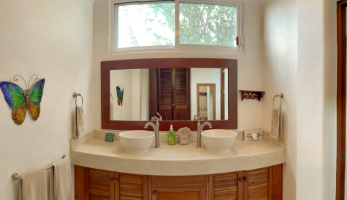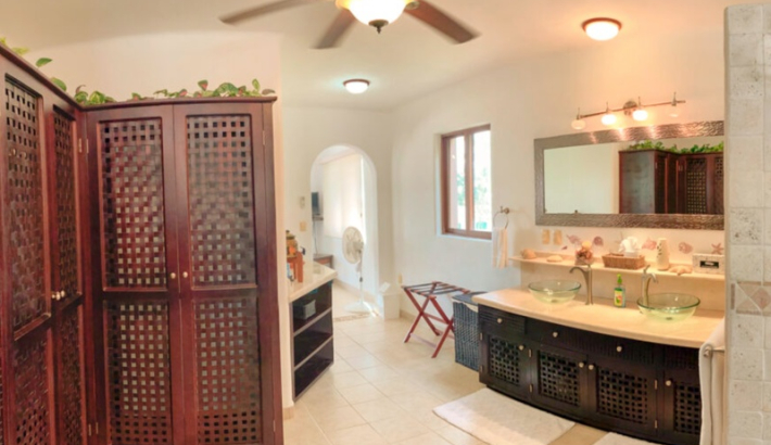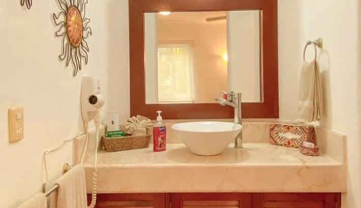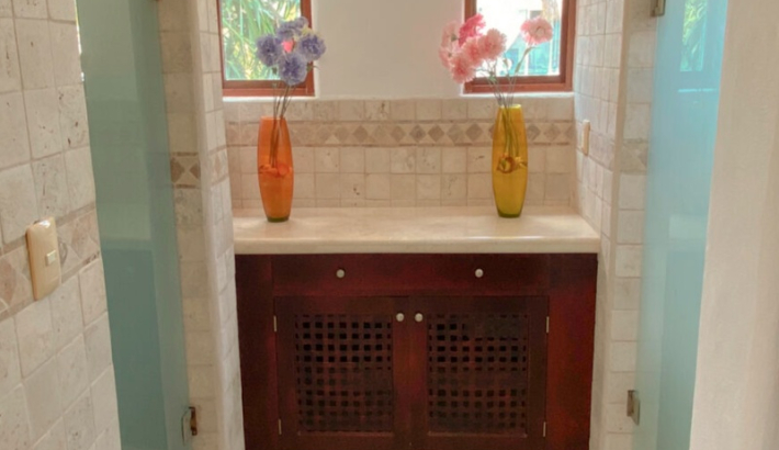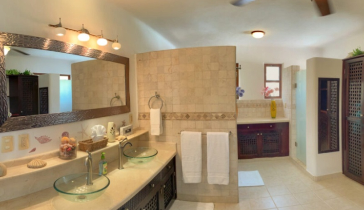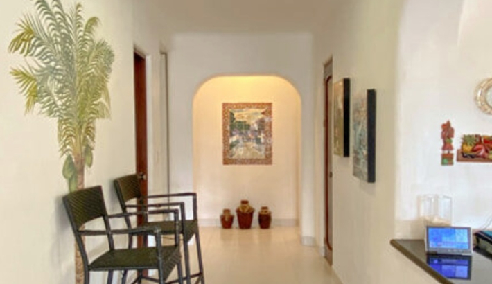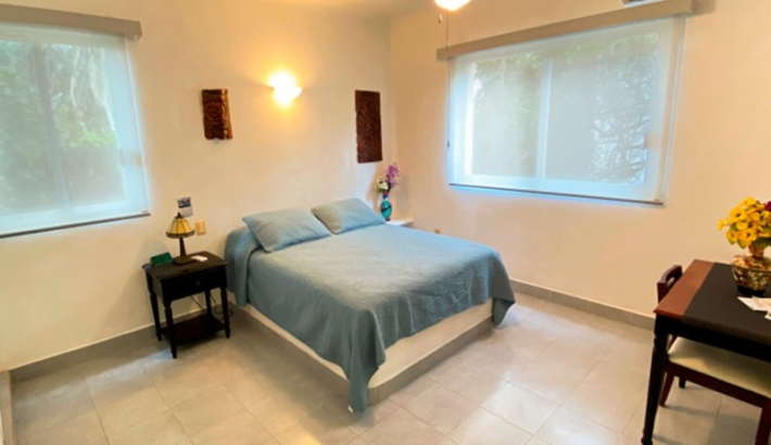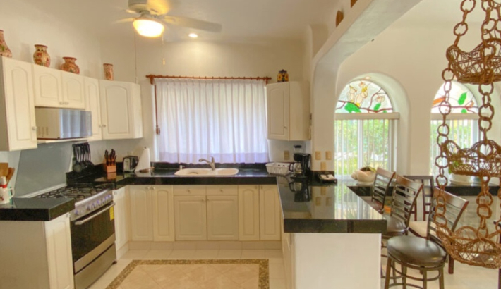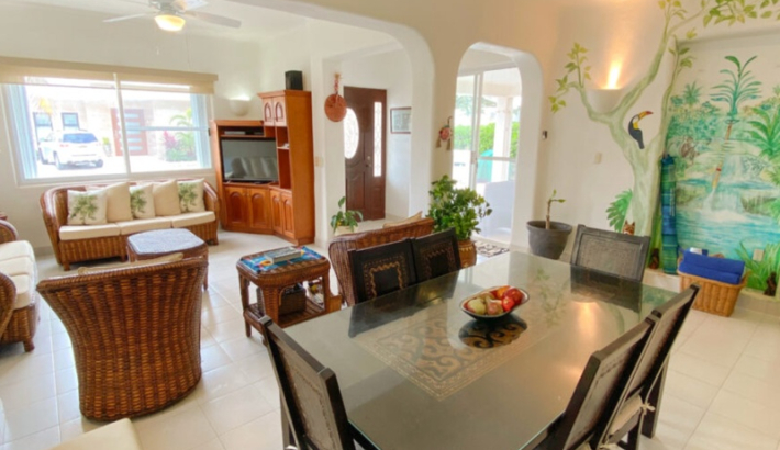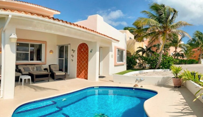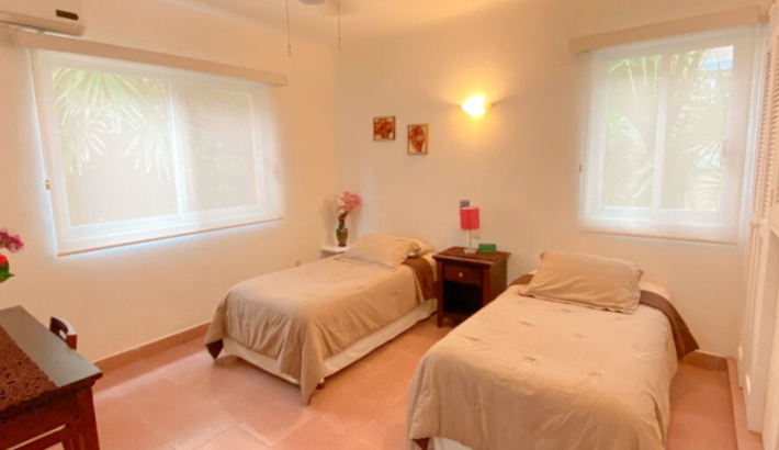 Viva y quédese en una comunidad cerrada cerca de Playa del Carmen. Playacar fase 1. 375 m2 de terreno 250 m2 de construcción 4 dormitorios, 4,5 baños (para ocho o más) doble principal uno arriba y otro abajo. Casa Tomas Playacar es una estupenda casa de playa con piscina privada. La playa está a sólo unos pasos. Ubicada en la lujosa Playacar Fase I, una exclusiva comunidad cerrada de casas privadas en Playa del Carmen, esta fabulosa casa/casa le ofrece una vista hasta Cozumel. A solo unos pasos se encuentra la playa de arena blanca y las cálidas aguas turquesas del hermoso Mar Caribe. Casa Tomás está decorada en estilo español, perfecta para quienes buscan una vivienda romántica, así como para quienes buscan un retiro familiar tropical en México. Todas las comodidades que pueda imaginar se le brindan en esta lujosa casa de vacaciones: TV vía satélite, lavandería, aire acondicionado y ventiladores de techo, cocina totalmente equipada e increíbles vistas al mar. Hay 3 dormitorios en el primer piso, el principal tiene una cama tamaño king, el segundo tiene una cama tamaño queen y el tercero tiene 2 gemelos, cada uno con su propio baño. La nueva suite principal de arriba tiene una cama tamaño king y un enorme baño de mármol. Hay 2 masters, uno en cada piso. La espaciosa terraza superior cuenta con sillones acolchados, una mesa al aire libre con sombrilla, una fantástica parrilla para barbacoa y una vista al mar inmejorable. Casi todo lo que ve se venderá con la casa. Esta casa es un excelente alquiler.