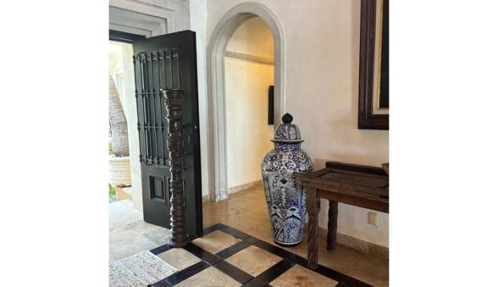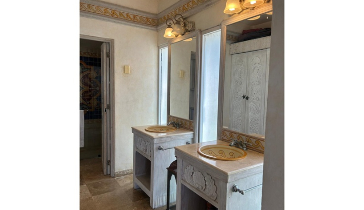 Esta increíble y hermosa residencia de arquitectura mexicana se encuentra en una comunidad privada cerrada, en Playa del Carmen. Cada detalle de esta villa está diseñado para una experiencia de vida elevada. La amplia cocina de planta abierta cuenta con una hermosa isla y encimeras con cubierta de granito, ideal para organizar reuniones familiares íntimas, complementada con electrodomésticos de primera línea y amplio espacio de almacenamiento. Los altos techos con vigas de madera añaden calidez y grandeza, mientras que la combinación de pisos de madera y mármol de primera calidad crea una estética sofisticada en todas partes. Totalmente amueblada y lista para entrar a vivir, la casa está equipada con aire acondicionado para comodidad durante todo el año. Las amplias áreas de sala y comedor fluyen sin esfuerzo hacia la terraza al aire libre, donde encontrará una impresionante piscina infinita con vista a la tranquila playa, perfecta para disfrutar de los amaneceres o relajarse bajo las estrellas. Diseñada para una relajación y entretenimiento de lujo, esta villa incluye grandes ventanales y puertas corredizas que bañan el interior con luz natural y capturan vistas espectaculares del mar y el exuberante paisaje tropical. Cada habitación ofrece un refugio privado con armarios personalizados y baños en suite, mientras que la suite principal disfruta de vistas directas al mar y comodidades tipo spa. Esta villa no es sólo un hogar; es una invitación a experimentar la vida costera en su máxima expresión. Asegure su pedazo de paraíso y haga suyo este santuario. Programe una visita privada hoy. • Tamaño del lote: 9,041 pies cuadrados • Tamaño de construcción: 4,843 pies cuadrados • Dormitorios: 4 amplios dormitorios con acabados personalizados • Baños: 5 baños elegantemente diseñados. • Aparcamiento: zona de aparcamiento cerrada.