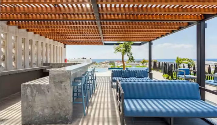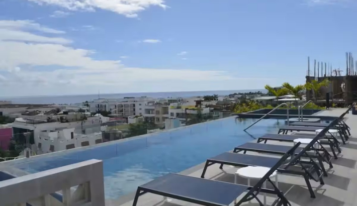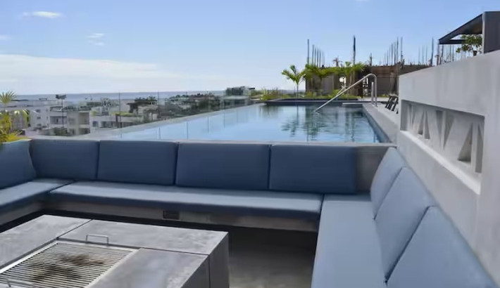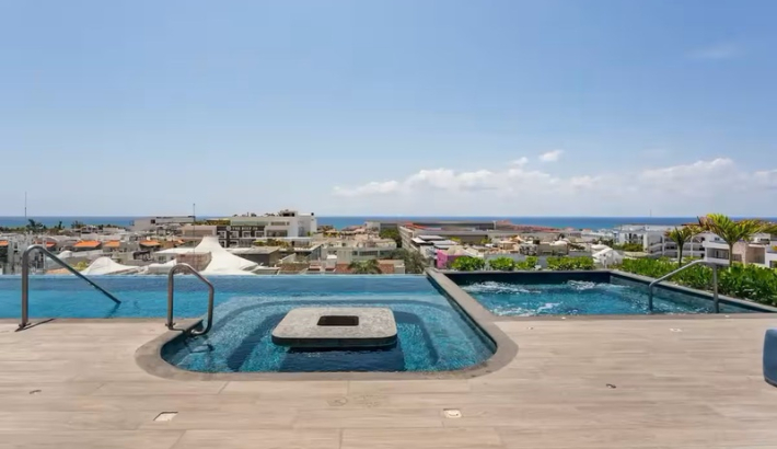 Alberca infinita en rooftop con vistas panorámicas al mar